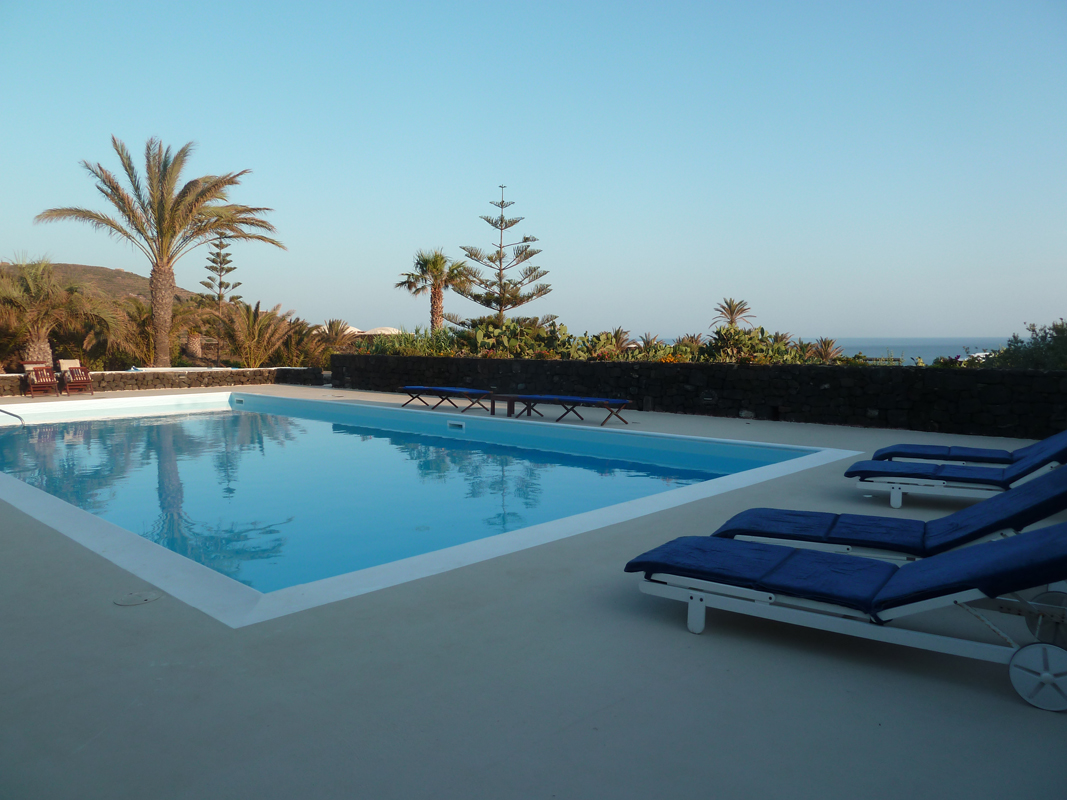 The Pantelleria Holidays property consists of 3 Dammusi, one on 2 floors, a pool of 7 x 15 meters and 2 and a half hectares of land planted with olive trees, palm trees, bougainvilleas and many other varieties of plants. The 3 Dammusi offer a magnificent view of the sea and the greenery. In total, there are 4 independent apartments because in the Dammuso Lucia, on 2 floors, the main one, the entrances are independent. They have all been restructured recently, they have all the comfort and their electrical installations are up to standard. Other equipment: within the main Dammuso the parts are equipped with heat pumps; the other rooms are equipped with ceiling fans. Each Dammuso is supplied with water by its own cistern, besides within the property there is a natural well: the water, precious resource on the island, does not pose a problem!